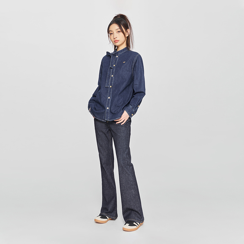 秋冬明线拼接设计垂感裤 高腰牛仔裤 子女J 港风阔腿时尚 班尼路经典