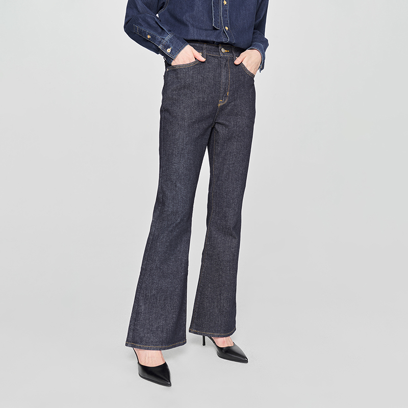 A3HAF1128 中黑水洗牛仔裤 太平鸟高腰阔腿喇叭裤 2025年春夏新款