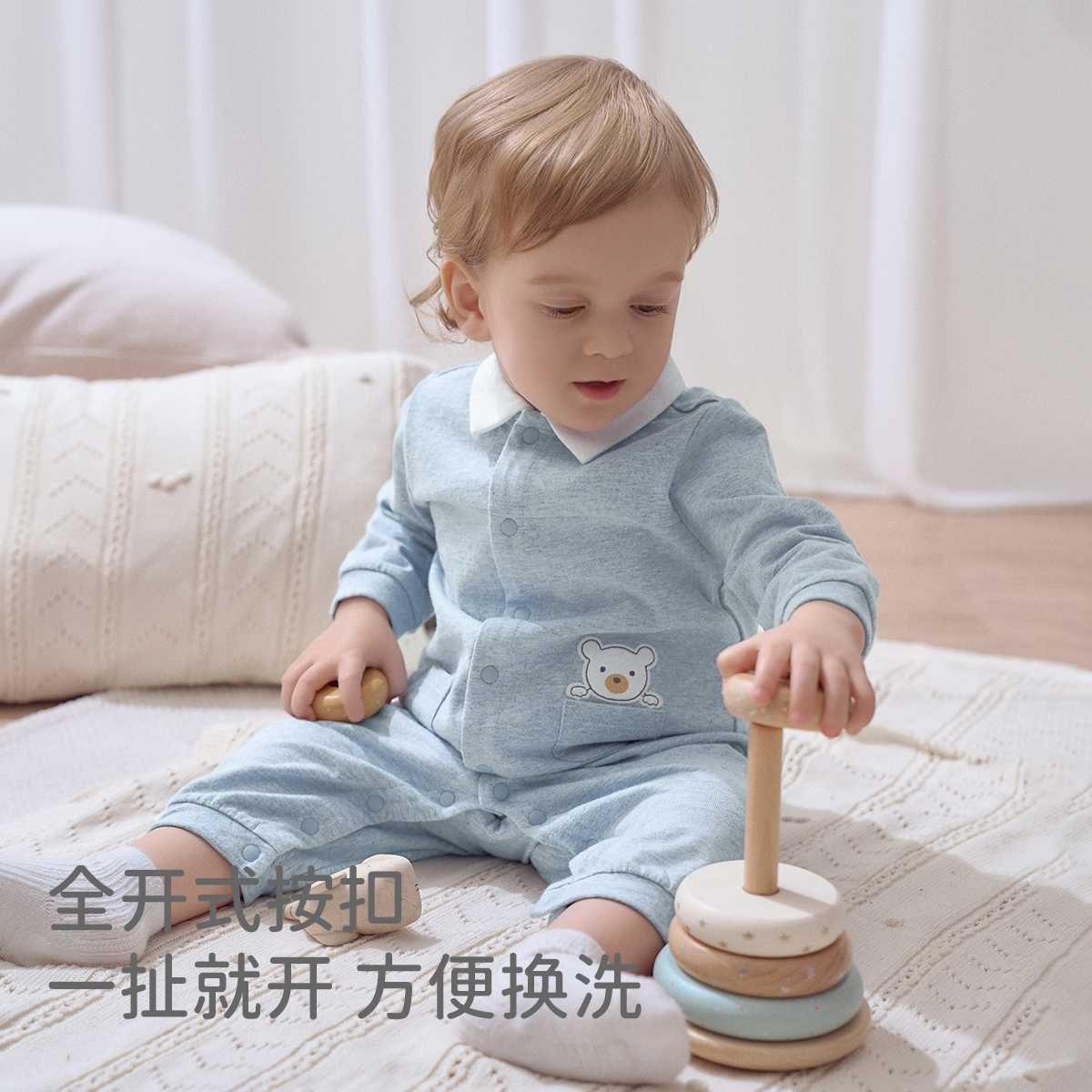 戴维贝拉新生儿爬服哈衣男宝宝纯棉连体衣2025新款 婴儿包屁衣 秋装