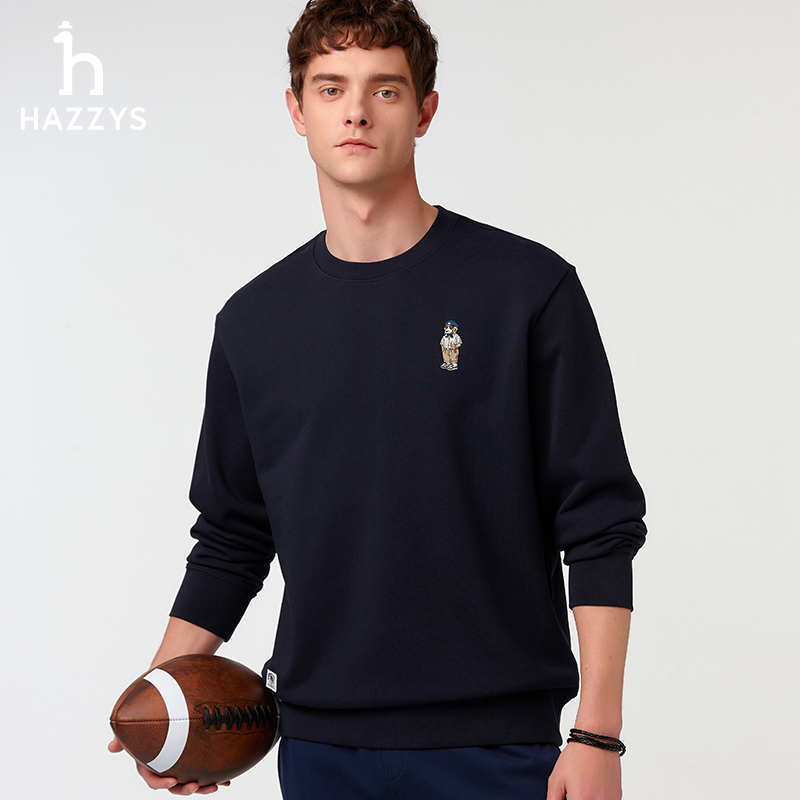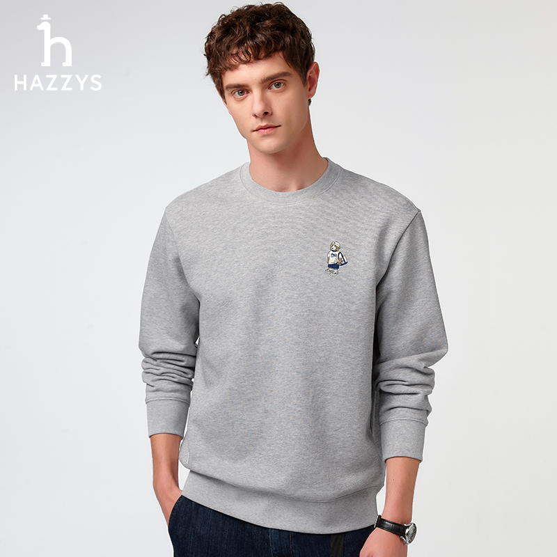 新款 T恤2025春季 简约休闲刺绣圆领套头卫衣 长袖 Hazzys哈吉斯男装