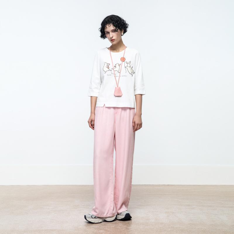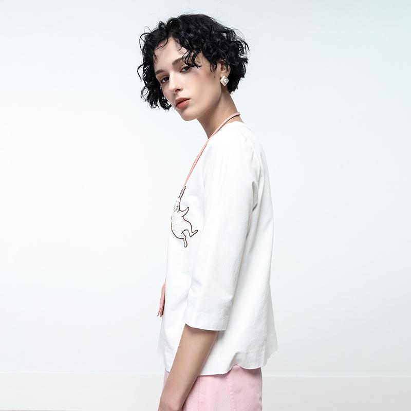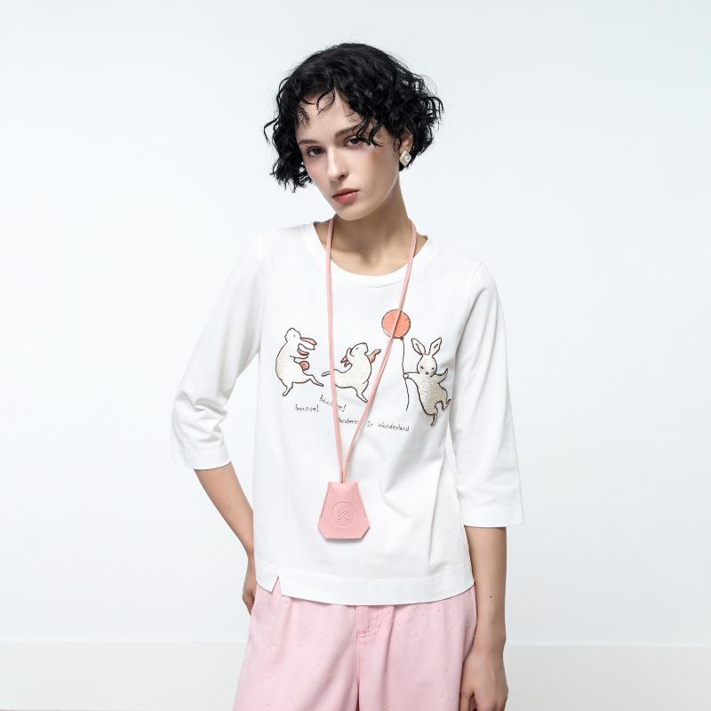五分袖 兔子绣花圆领T恤女装 百搭上衣 新款 Keywearcloud奇威秋季