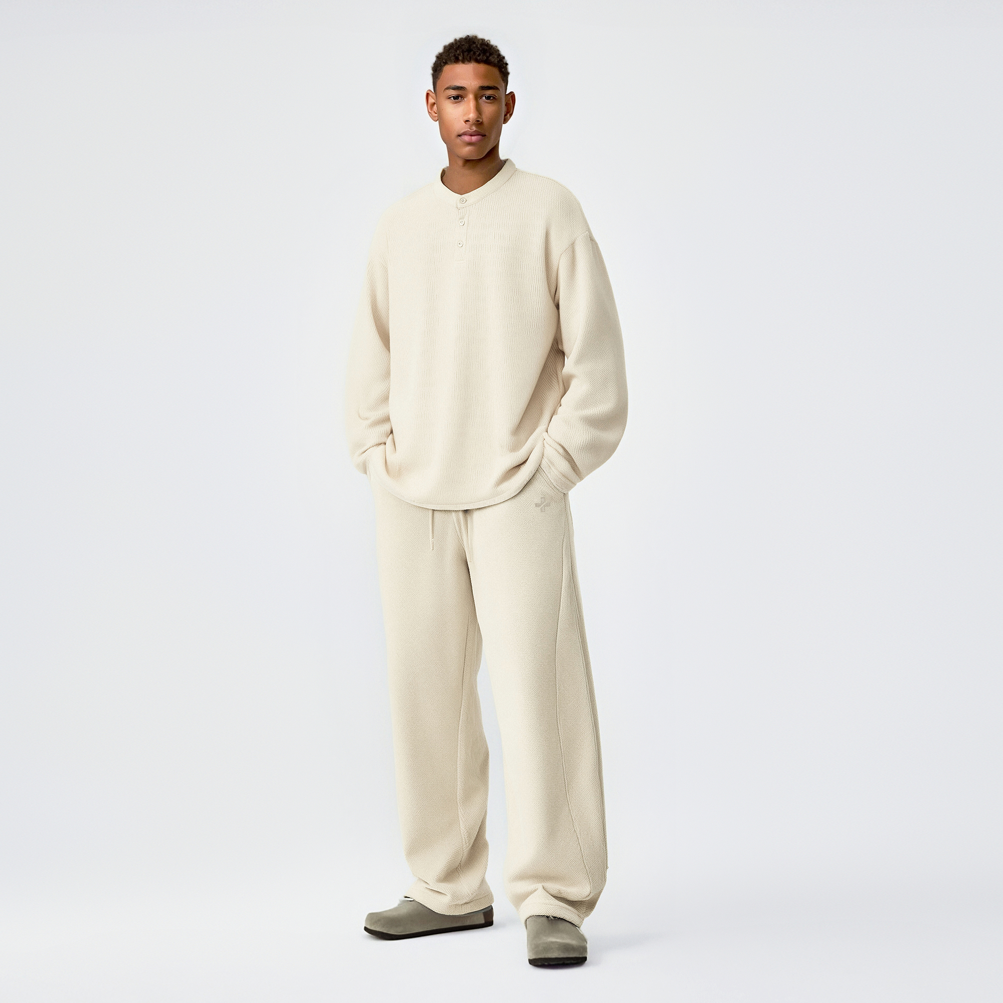 男简约宽松休闲肌理感纯色针织长裤 直筒卫裤 男 新款 bdpowerup秋季