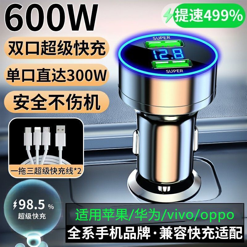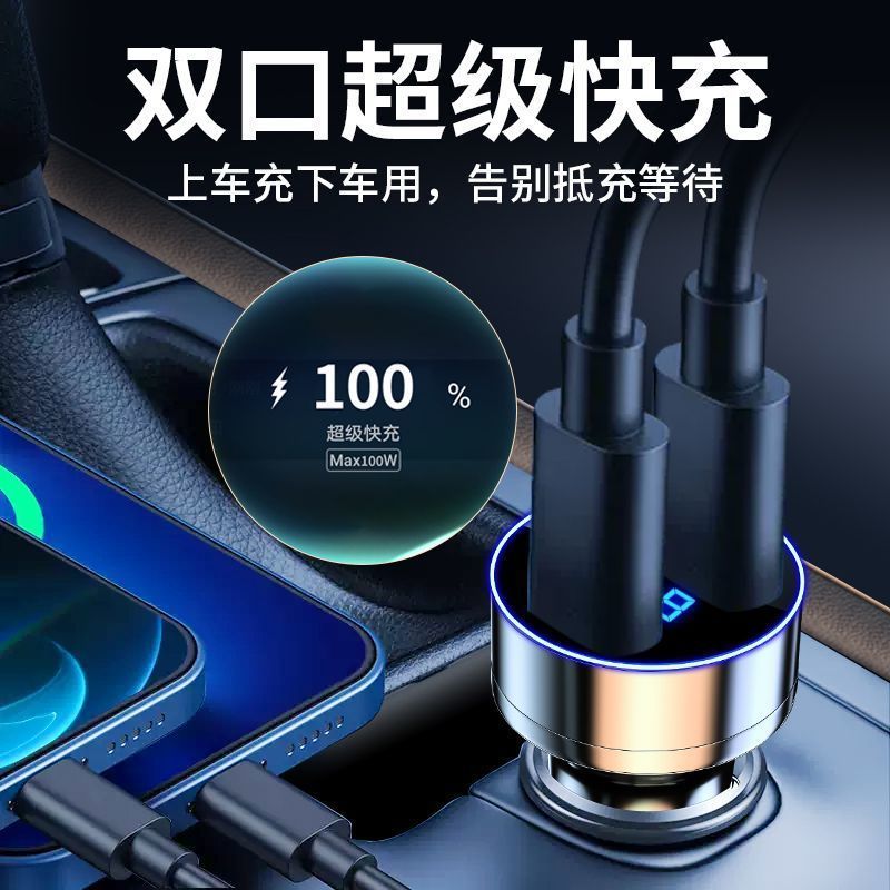 120W车载充电器超级快充适用华为苹果一拖二汽车专用转换插头车充