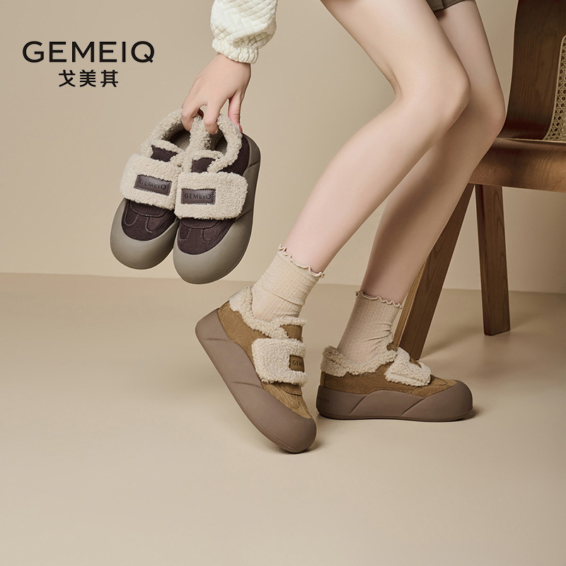 女款 毛毛鞋 2025秋冬新款 豆豆鞋 雪地靴 东北棉鞋 加绒全包复古勃肯鞋