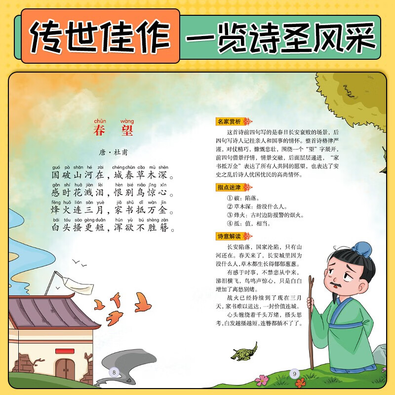 这才是孩子爱看 少年读李白杜甫白居易苏东坡古诗词大全爆笑漫画书古代诗词人二三四年级课外阅读书籍 漫画杜甫诗集全套6册注音版