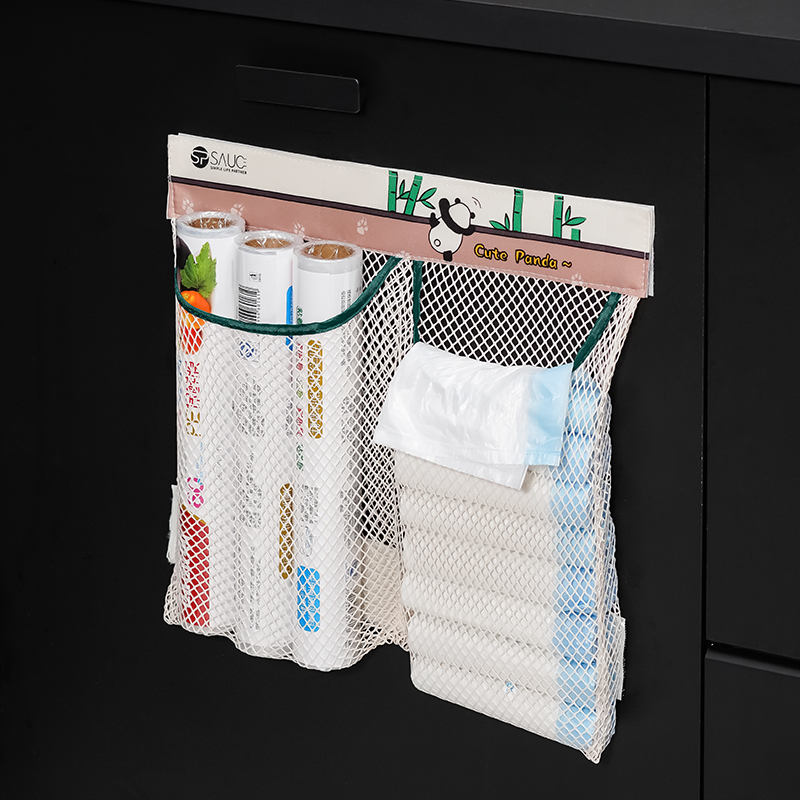 日本垃圾袋收纳神器大容量厨房储物袋子放装 塑料袋挂袋魔术贴网兜