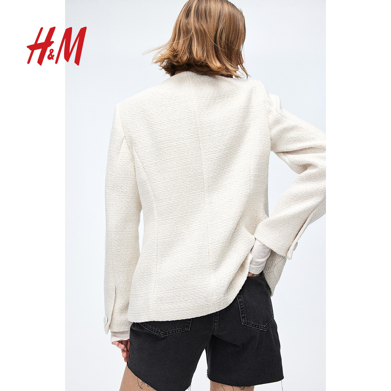 纹理感千金小香风外套1202760 圆领修身 HM女装 短外套秋季