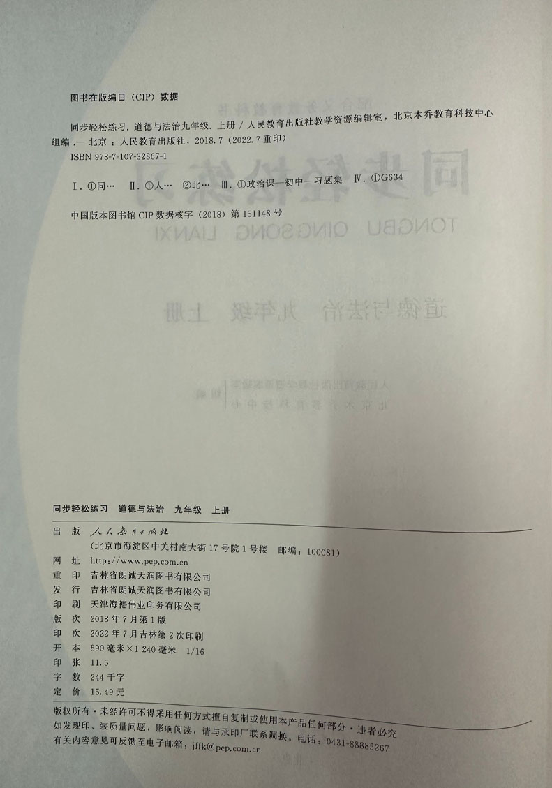 社人教版 含卷子答案 配套道德与法治9上人民教育出版 九9年级上册道德与法治同步轻松练习 九年级上册道德与法治同步轻松练习 人教版