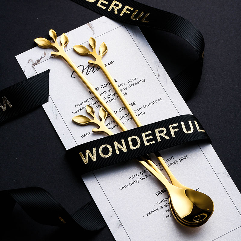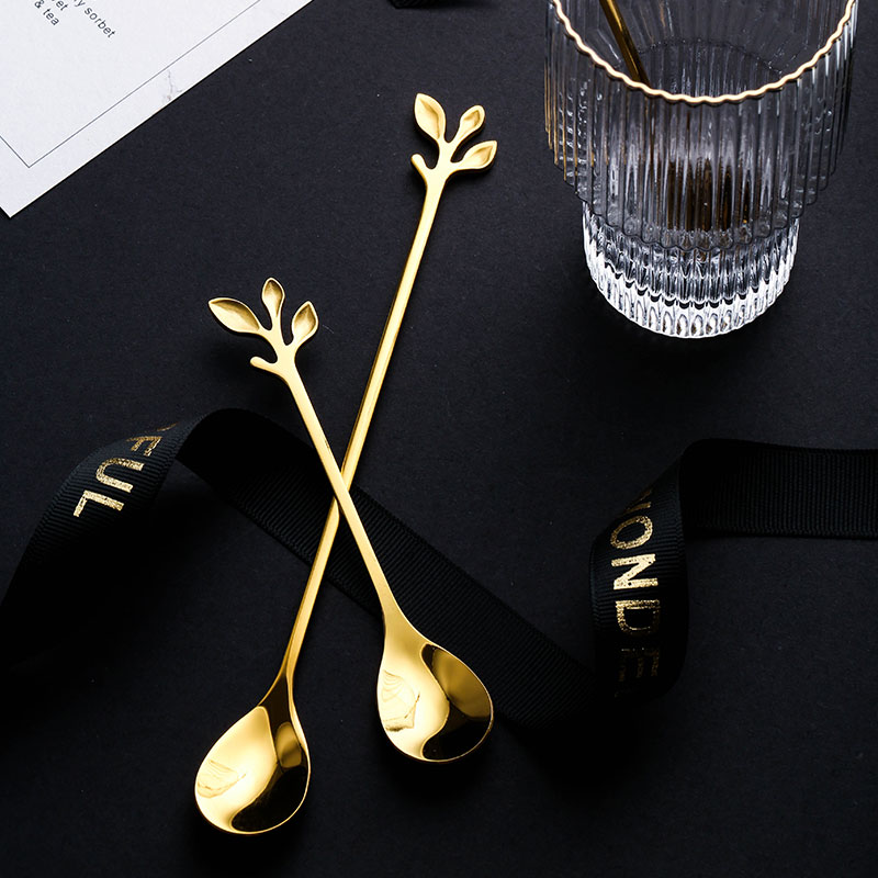 创意不锈钢树叶咖啡勺家用长柄水杯搅拌勺甜品水果叉勺伴手礼勺子