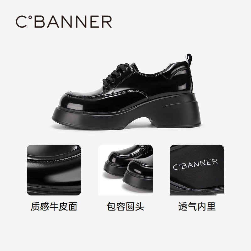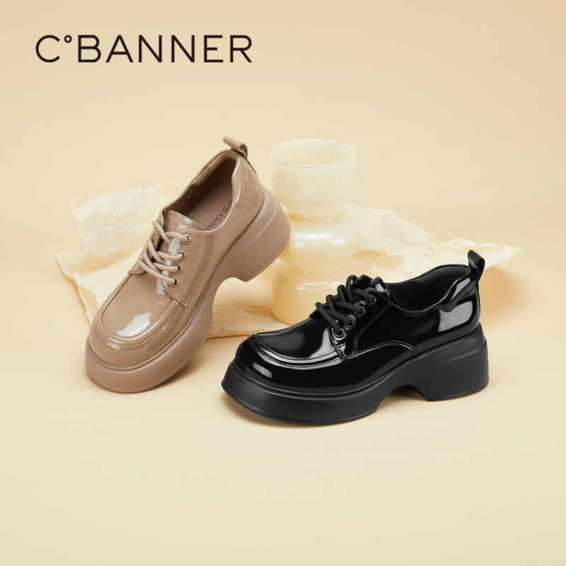2025秋新款 布洛克中粗跟皮鞋 HL257112 系带牛津鞋 哈森漆皮德比鞋