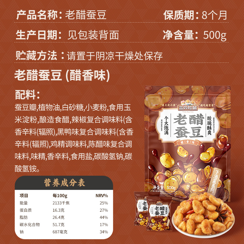 四川零食下酒菜糖醋兰花豆小包装 新品 三只松鼠_老醋蚕豆500g