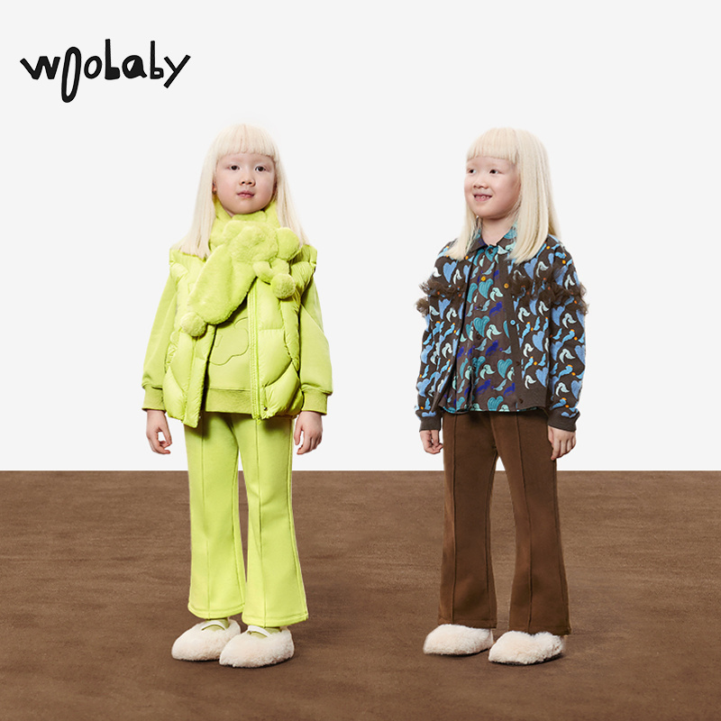 裤 24秋冬儿童女宝休闲长裤 woobaby女童喇叭裤 子 加绒远红外发热