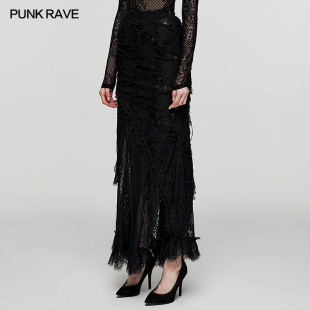 设计师款 褶皱肌理松紧腰拼接蕾丝半身长裙18465702 佐丹奴裙子女装