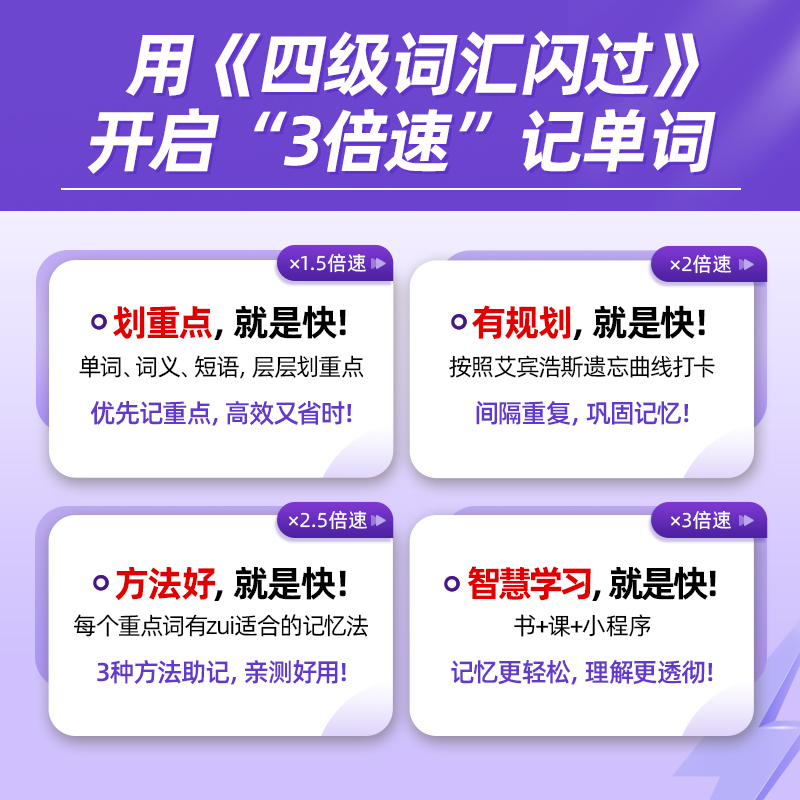 巨微英语四级真题资料乱序版 备考2025年12月四级英语词汇闪过大学四级词汇书旗舰版 六级高频单词cet4四级考试 官方旗舰店