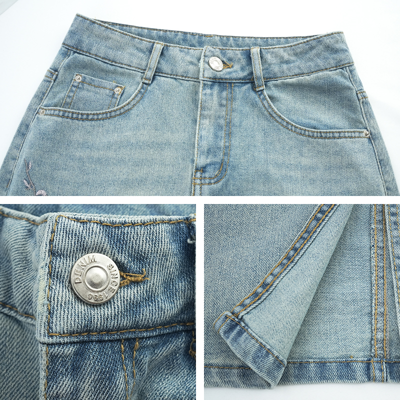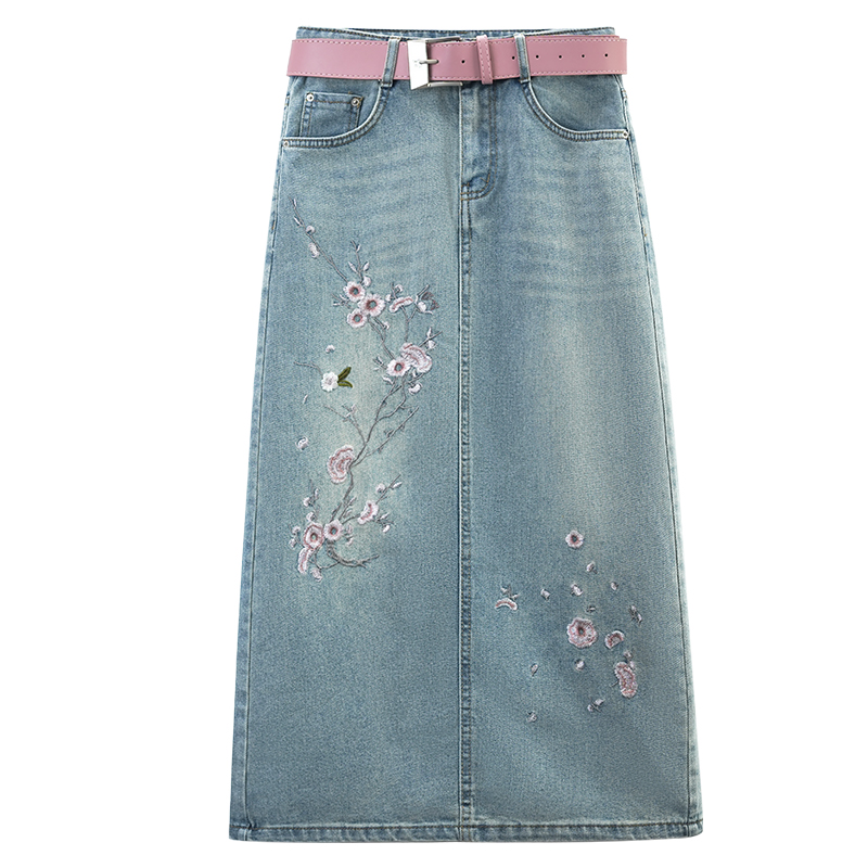 高腰显瘦a字一步包臀裙 刺绣中长款 国风牛仔半身裙女2024夏季 新款