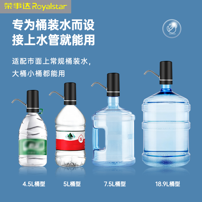 荣事达电动桶装 抽水双泵 水抽水器家用饮水机吸水自动抽水器按压式