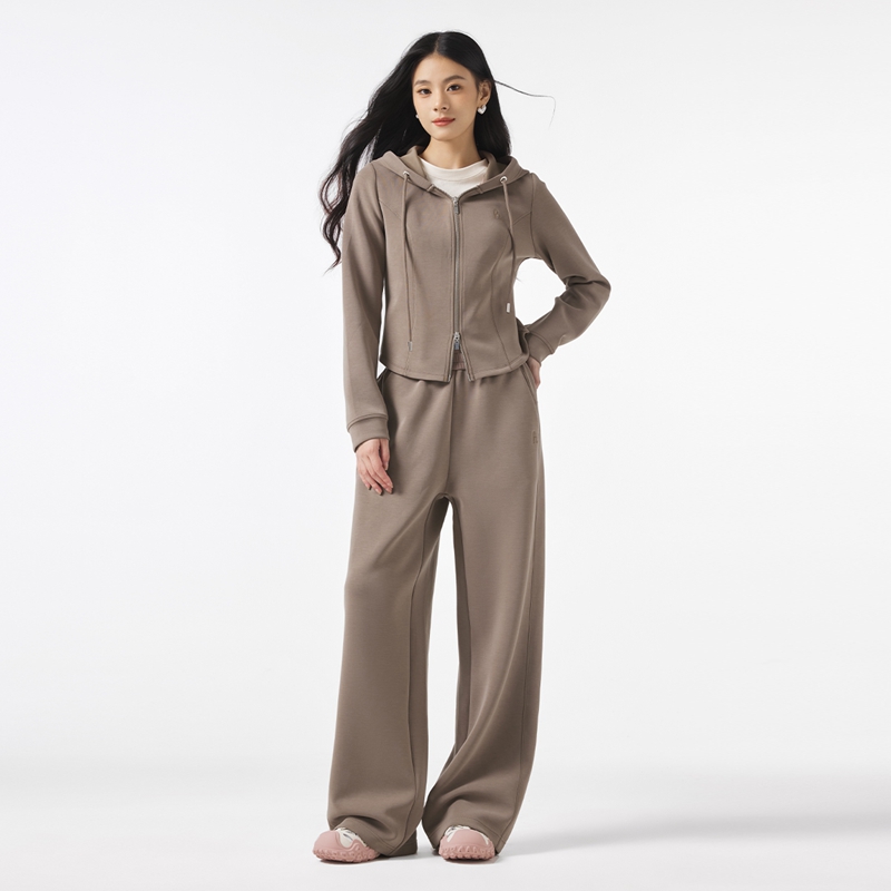 加绒街舞穿搭褶皱宽松休闲长裤 女秋冬季 子 灰色运动卫裤 自然涩美式