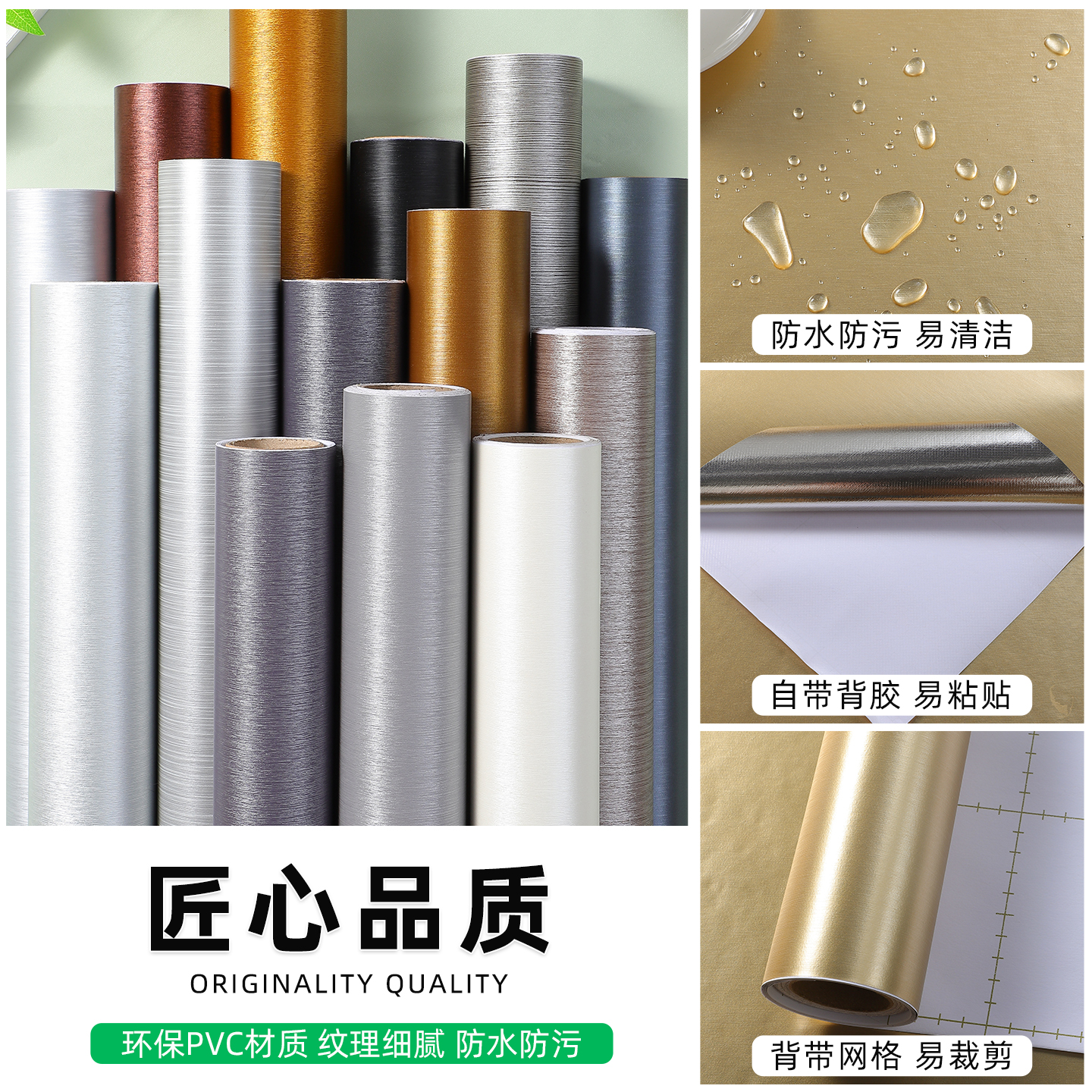 哑光金属膜厨房贴纸自粘翻新家具橱柜不锈钢金色贴膜防水墙纸壁纸