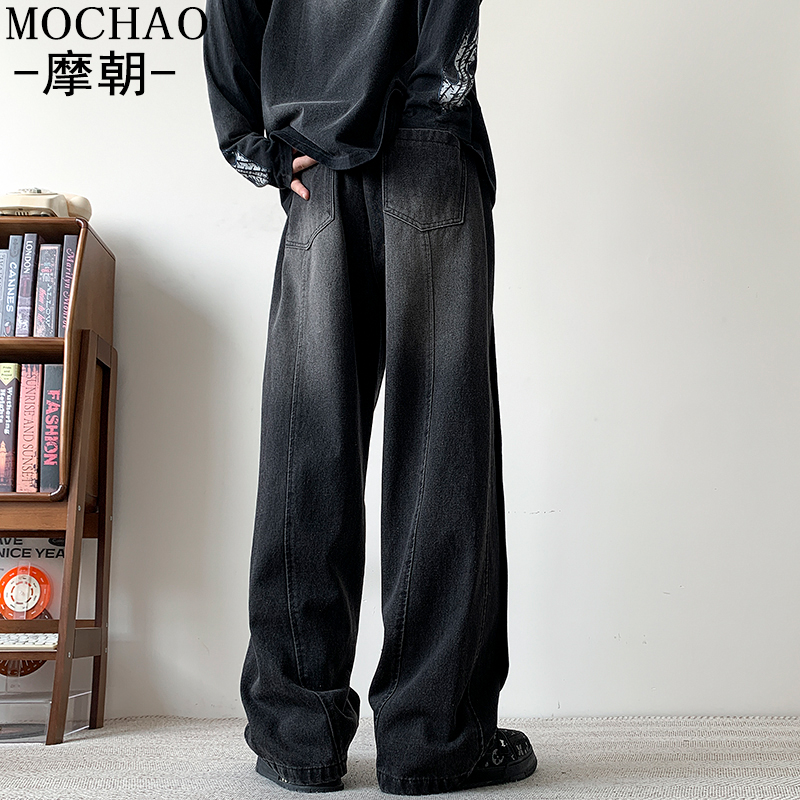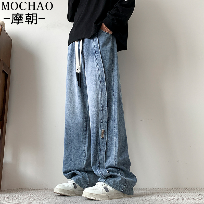 明辑线阔腿裤 复古vibe高街直筒长裤 男春秋潮流美式 马克华菲牛仔裤