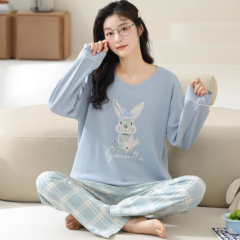 宽松加大码 都市丽人纯棉睡衣女款 套装 长袖 家居服可外穿 夏2025新款