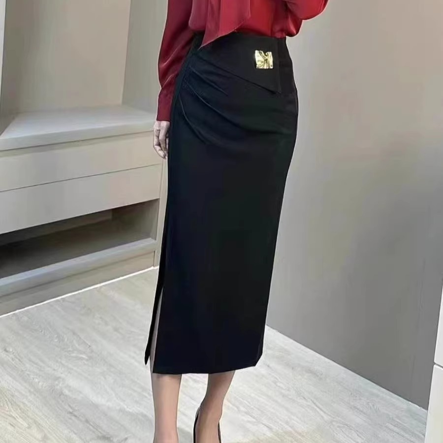 黑色西装 百搭高腰小个子显瘦包臀a字短裙 半身裙女秋冬微胖mm大码