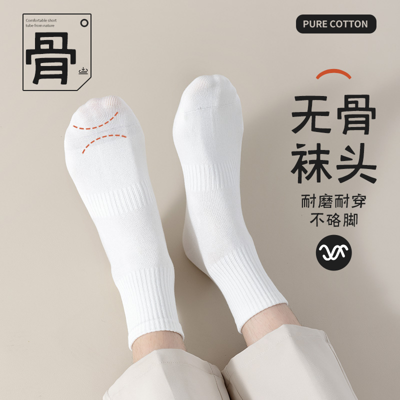 潮运动袜吸汗透气长筒袜 防臭纯棉中筒袜男款 白色袜子男士 春秋冬季