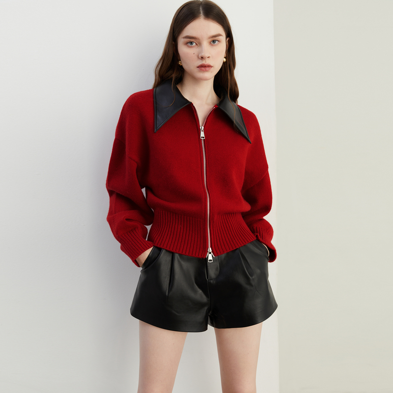 INXX 撞色假两件翻领设计开衫 美式 男女同款 毛衣情侣 复古针织衫