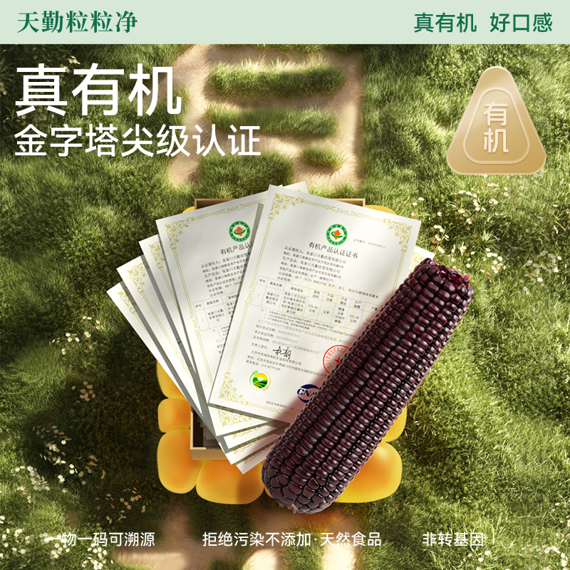 天勤粒粒净25年新鲜有机黑糯玉米铝箔装 甜粘苞新鲜玉米棒早餐即食