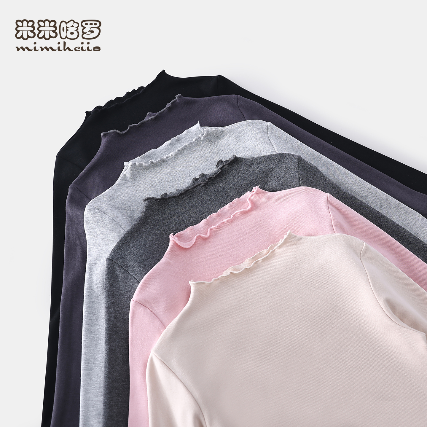 女宝上衣 小女孩内搭纯色花边领长袖 女童半高领打底衫 春秋2025新款
