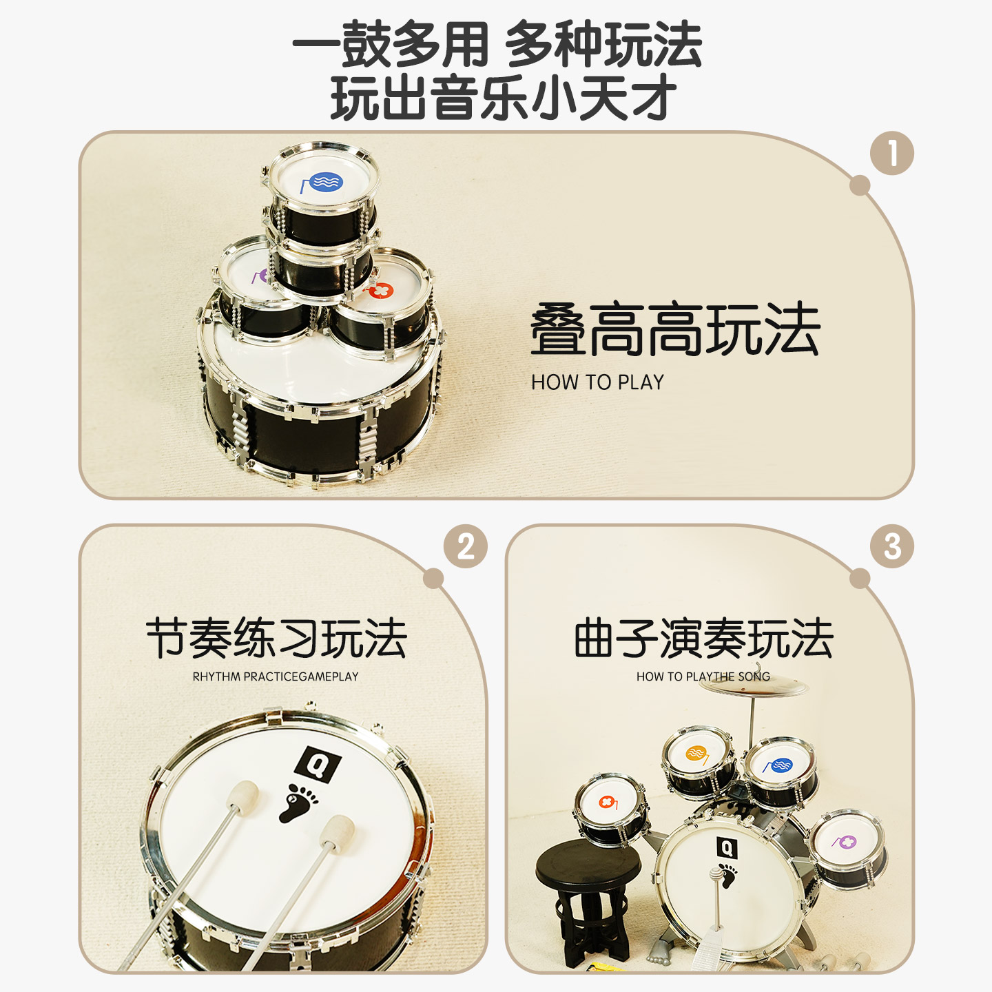 儿童架子鼓玩具宝宝家用练习爵士鼓初学者入门打鼓音乐打击乐器