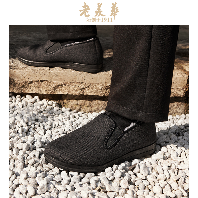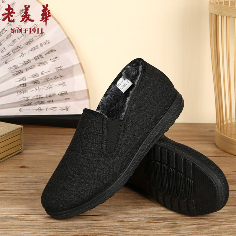 老人鞋 男保暖棉鞋 爸爸鞋 休闲工作鞋 老美华冬季 加绒男鞋 老北京布鞋