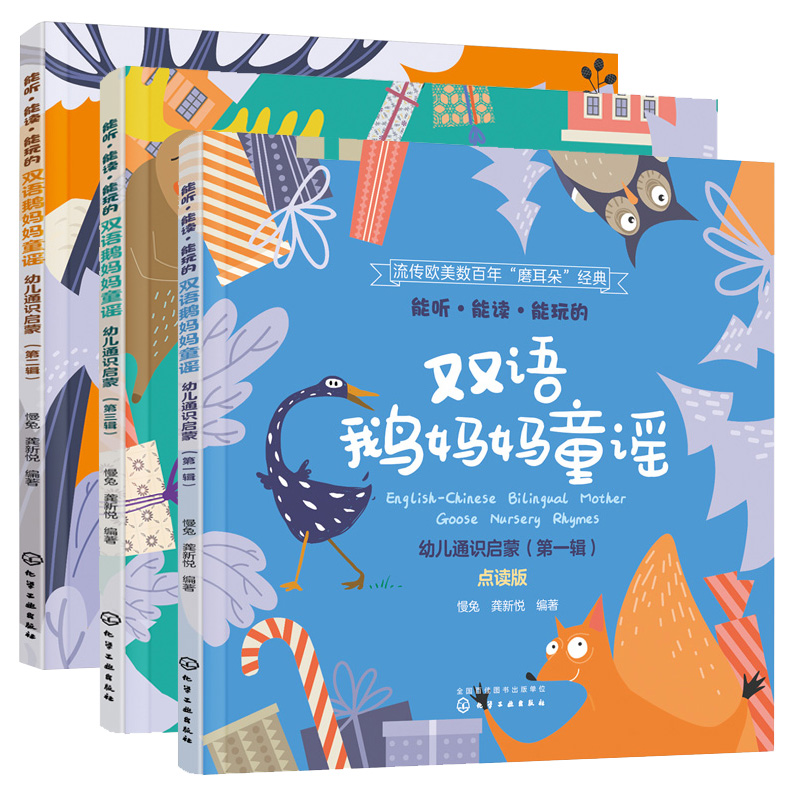 一二三辑儿童英语自学书籍 幼儿通识启蒙 3册 少儿英语早教双语音频童谣讲解 社 能听能读能玩 化学工业出版 双语鹅妈妈童谣