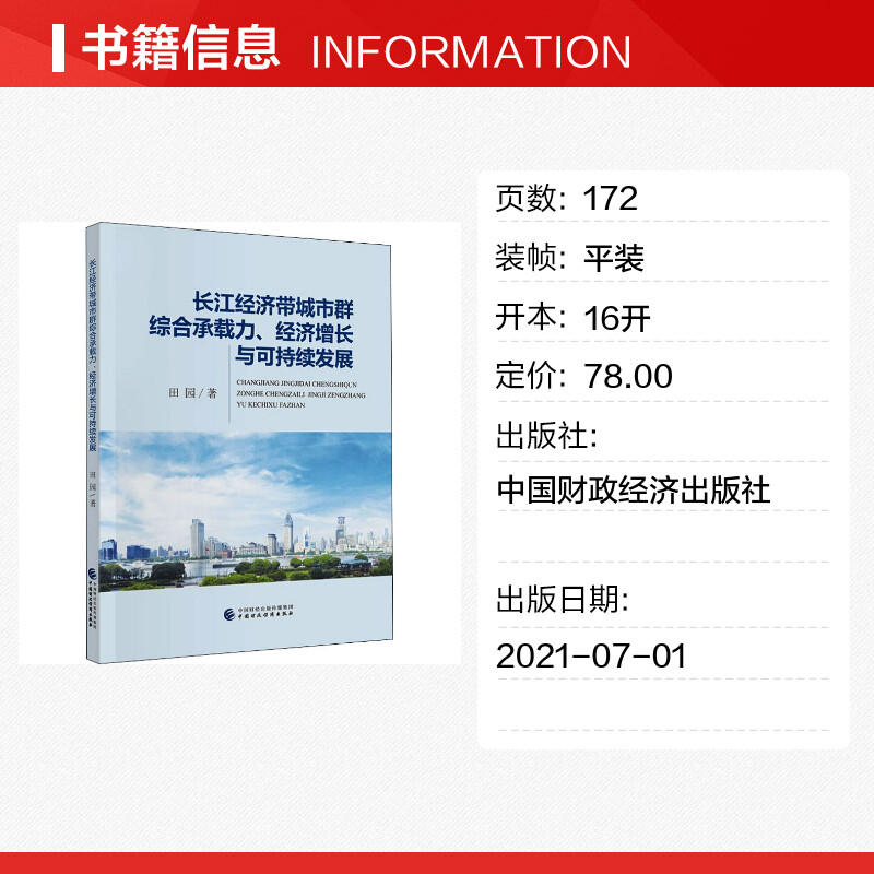 中国财政经济出版 田园 社 正版 新华书店旗舰店文轩官网 长江经济带城市群综合承载力 书籍 经济增长与可持续发展