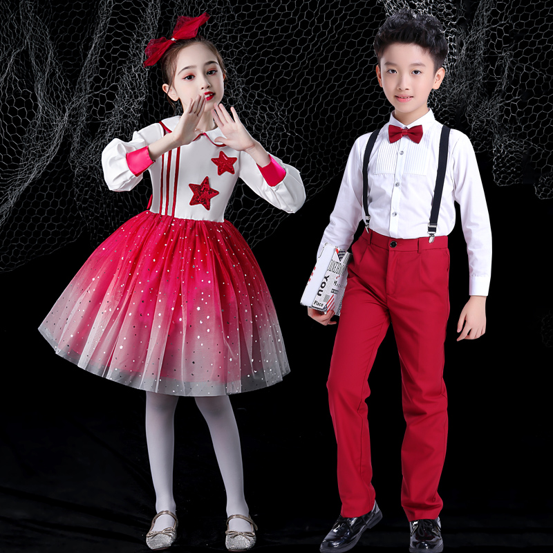 中小学生大合唱团演出服蓬蓬裙儿童礼服六一朗诵比赛表演服装 男女