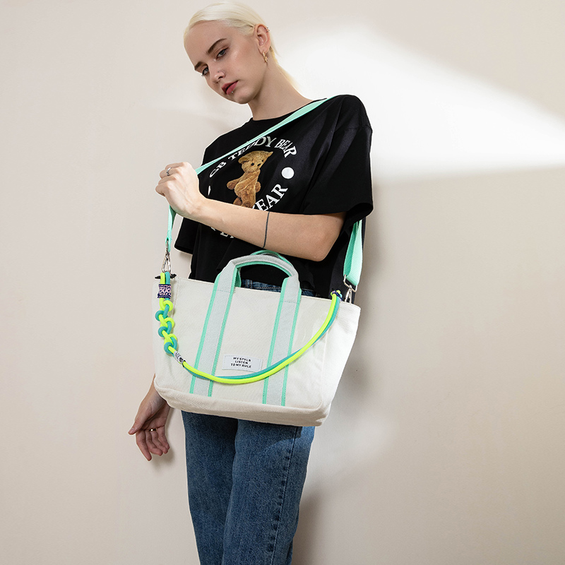 EHOOO韩版 大容量帆布包女上课大学生运动斜挎托特包休闲ins单肩包