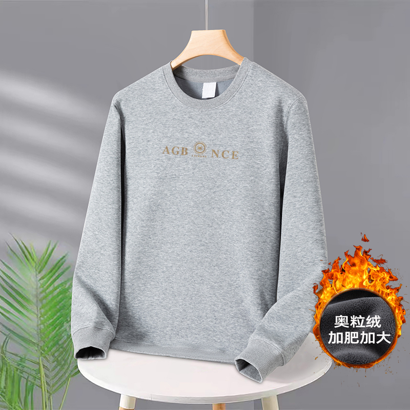 休闲套头绒衣圆领保暖潮牌打底衫 冬季 卫衣加肥加大码 加绒男款 大码