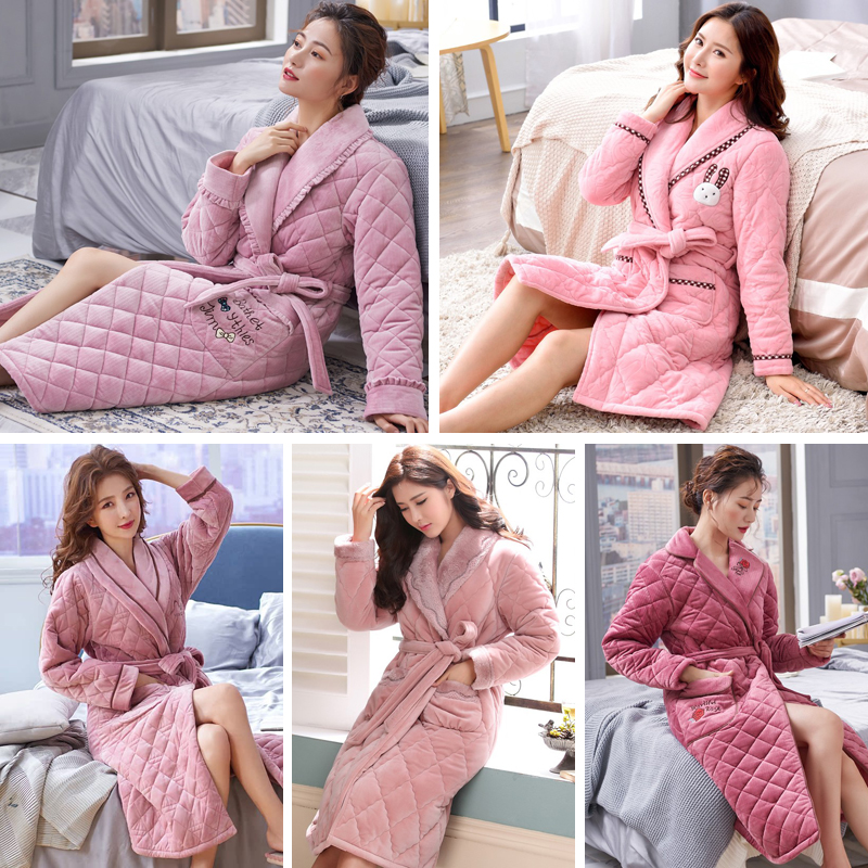 睡袍男冬法兰绒加厚秋冬珊瑚绒夹棉浴袍女睡衣家居服 清仓捡漏