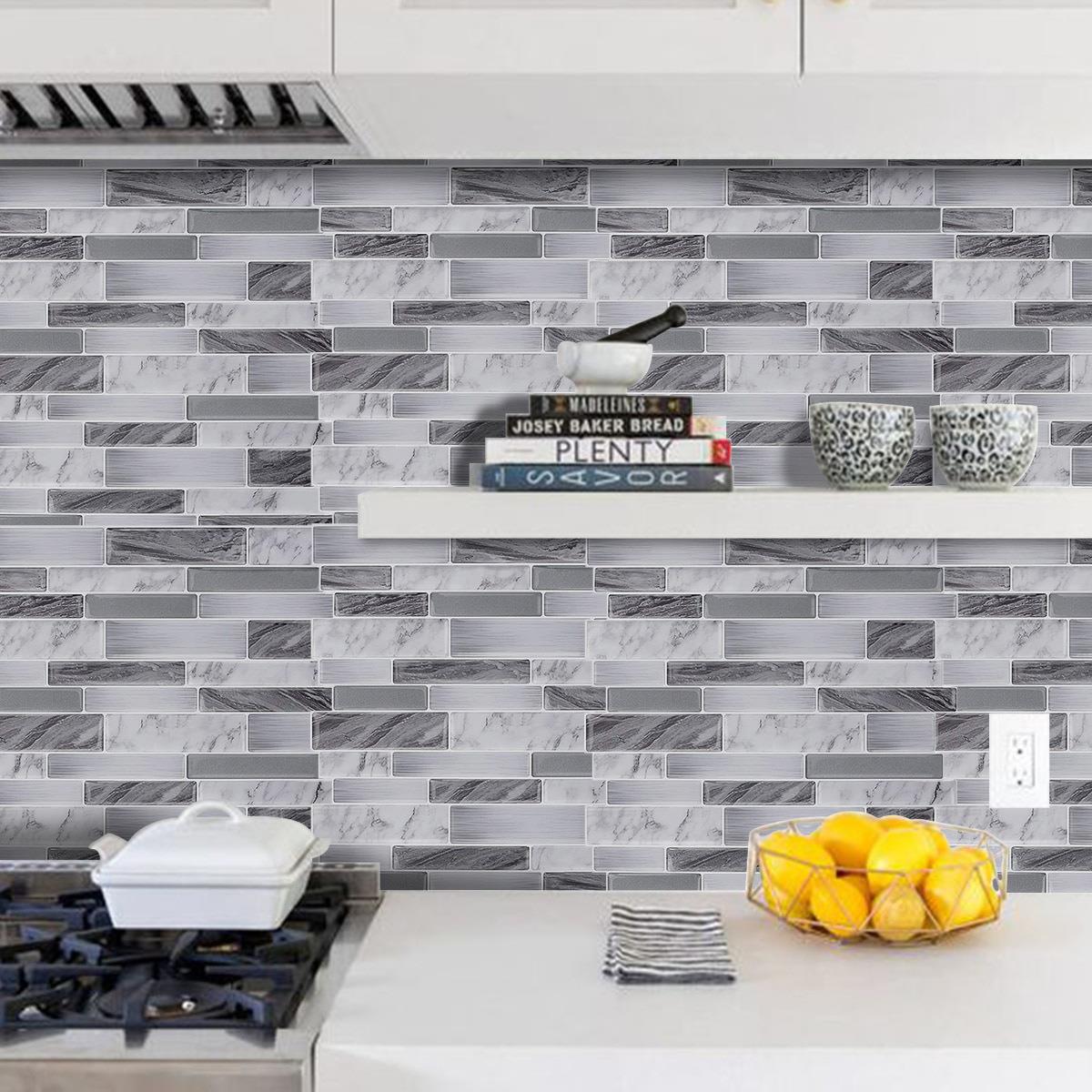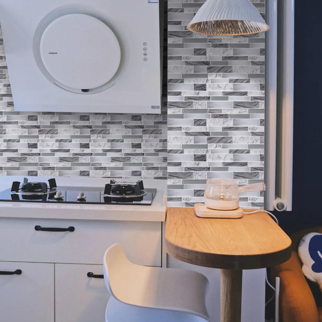 跨境3D仿真大理石瓷砖贴厨房浴室自粘亮面防水防污加厚墙贴定制