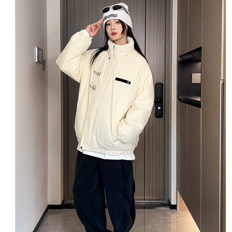 设计感立领加厚棉袄 可拆卸围巾连帽白色棉服冬季 KEIKO 高密防水
