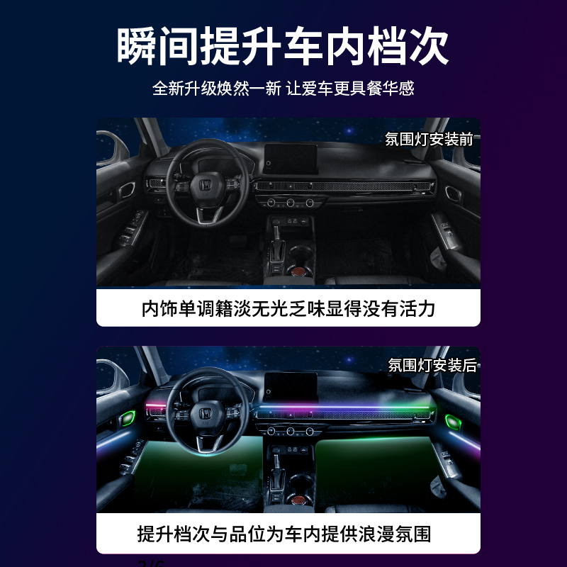 D60 E30 T60 适用启辰星 T90幻彩64色LED氛围灯改装 大V T70 晨风
