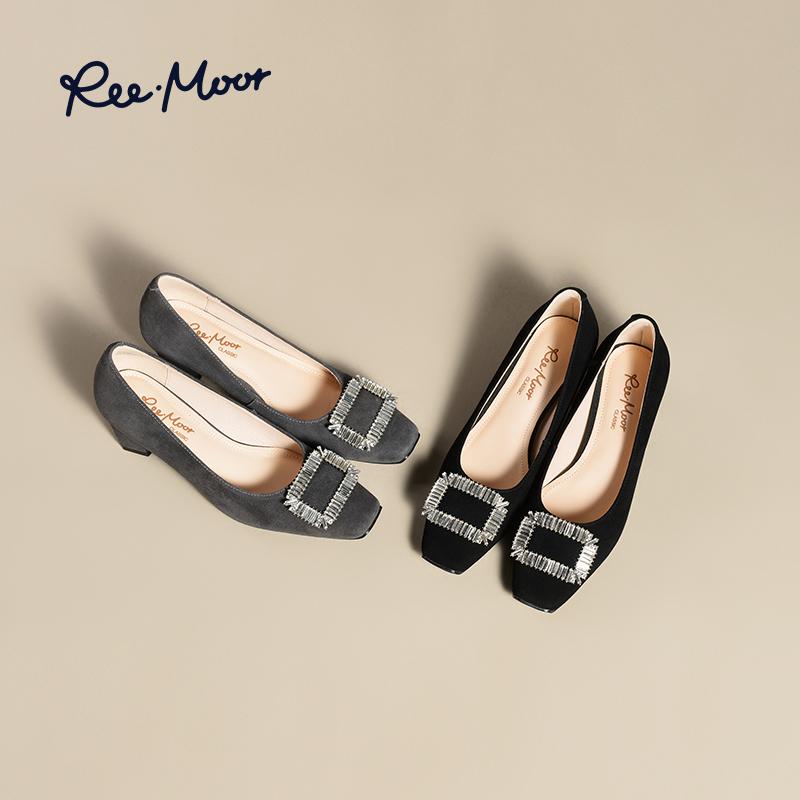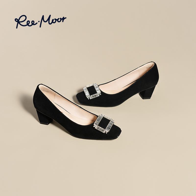 女浅口黑色通勤气质时尚 粗跟单鞋 舒适 法式 REEMOOR睿慕2025年新款