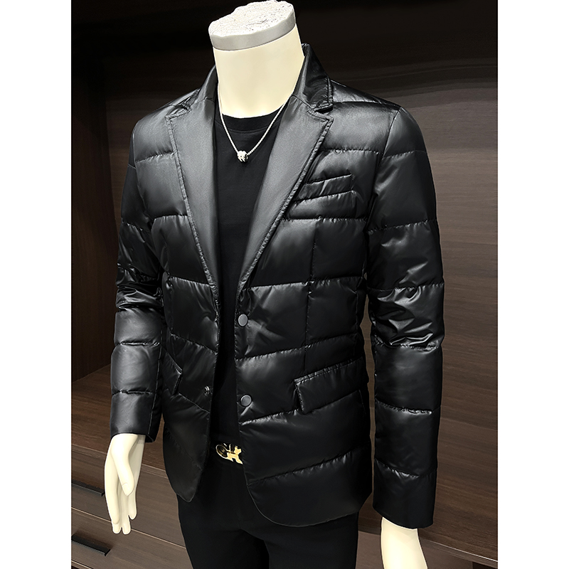 高级感冬装 西装 2025新款 冬季 潮牌帅气轻薄皮西服外套 领羽绒服男款