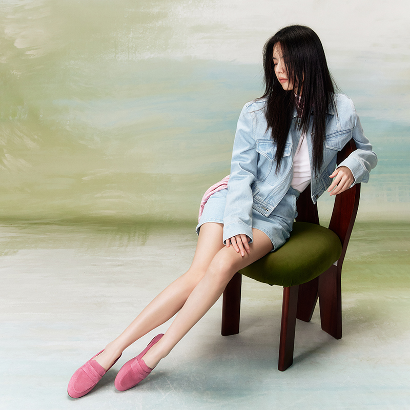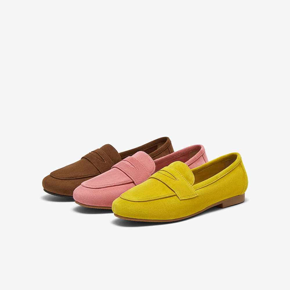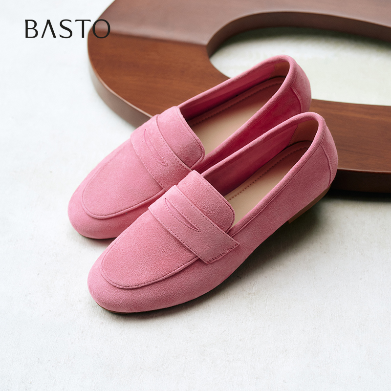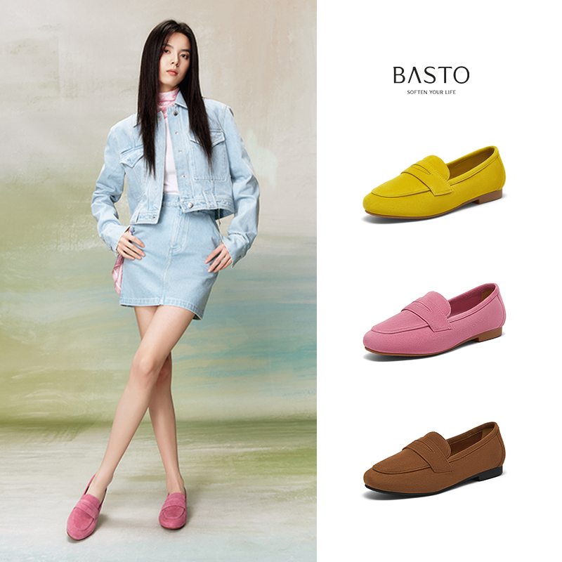 粉色一脚蹬女单鞋 超软羊皮通勤乐福鞋 W6711AA5 新款 百思图2025春季
