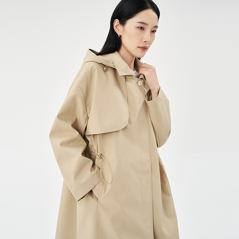 收腰显瘦连帽休闲中长款 宽松大码 风衣潮 新款 冲锋衣外套女2025春装