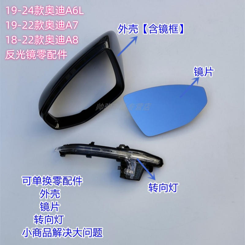 c8后视镜片A7 奥迪A6L反光镜外壳 A8倒车镜转向灯后壳 24款 适配19