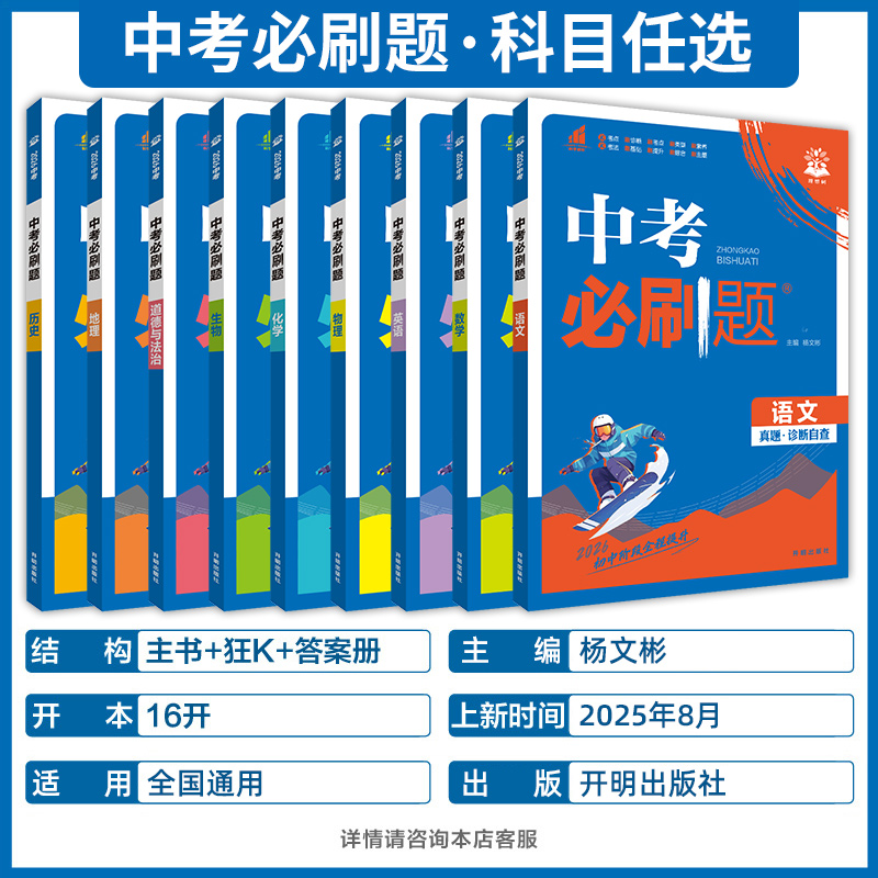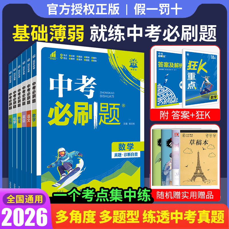 中考必刷题2026语文数学英语物理化学政治历史地理生物初三九年级初中必刷题中考真题卷2025全套中考真题分类必刷卷复习资料练习册