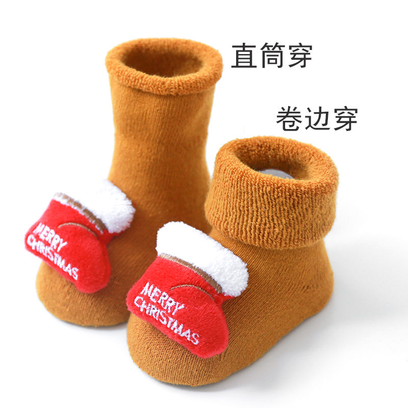 婴儿圣诞袜加厚保暖新生幼儿宝宝秋冬款 棉袜子可爱卡通公仔中筒袜