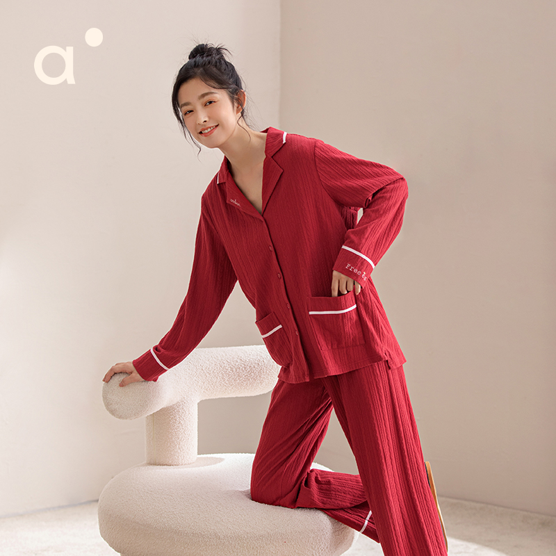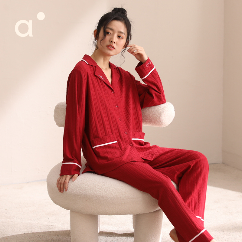 睡裙家居服可外穿 本命年新款 安之伴纯棉春秋季 睡衣红品情侣男女款