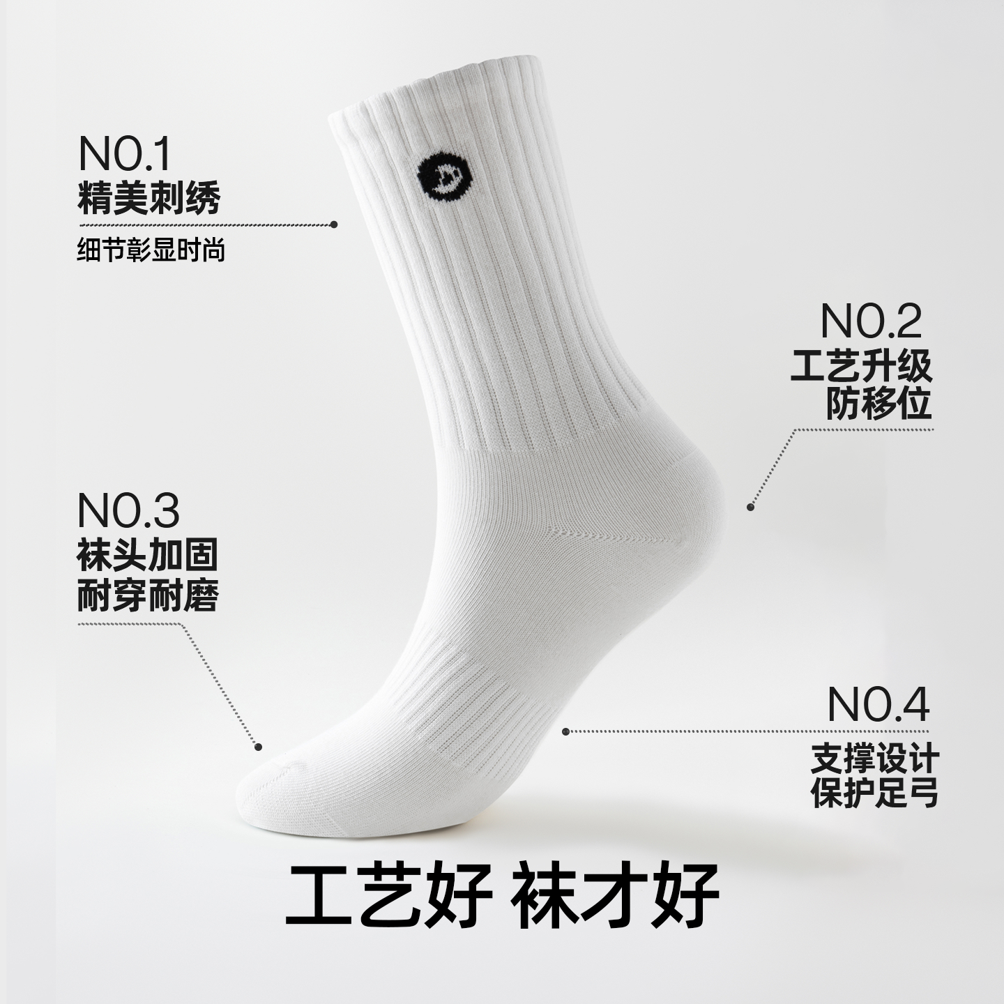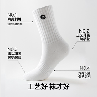 小野和子袜子女夏薄款 运动白色无骨袜 纯色百搭棉袜中筒袜2025新款