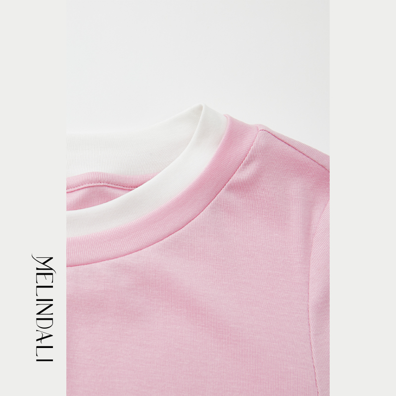 修身 限定樱花粉叠穿神qi莱赛尔打底针织衫 假两件T恤 Melinda
